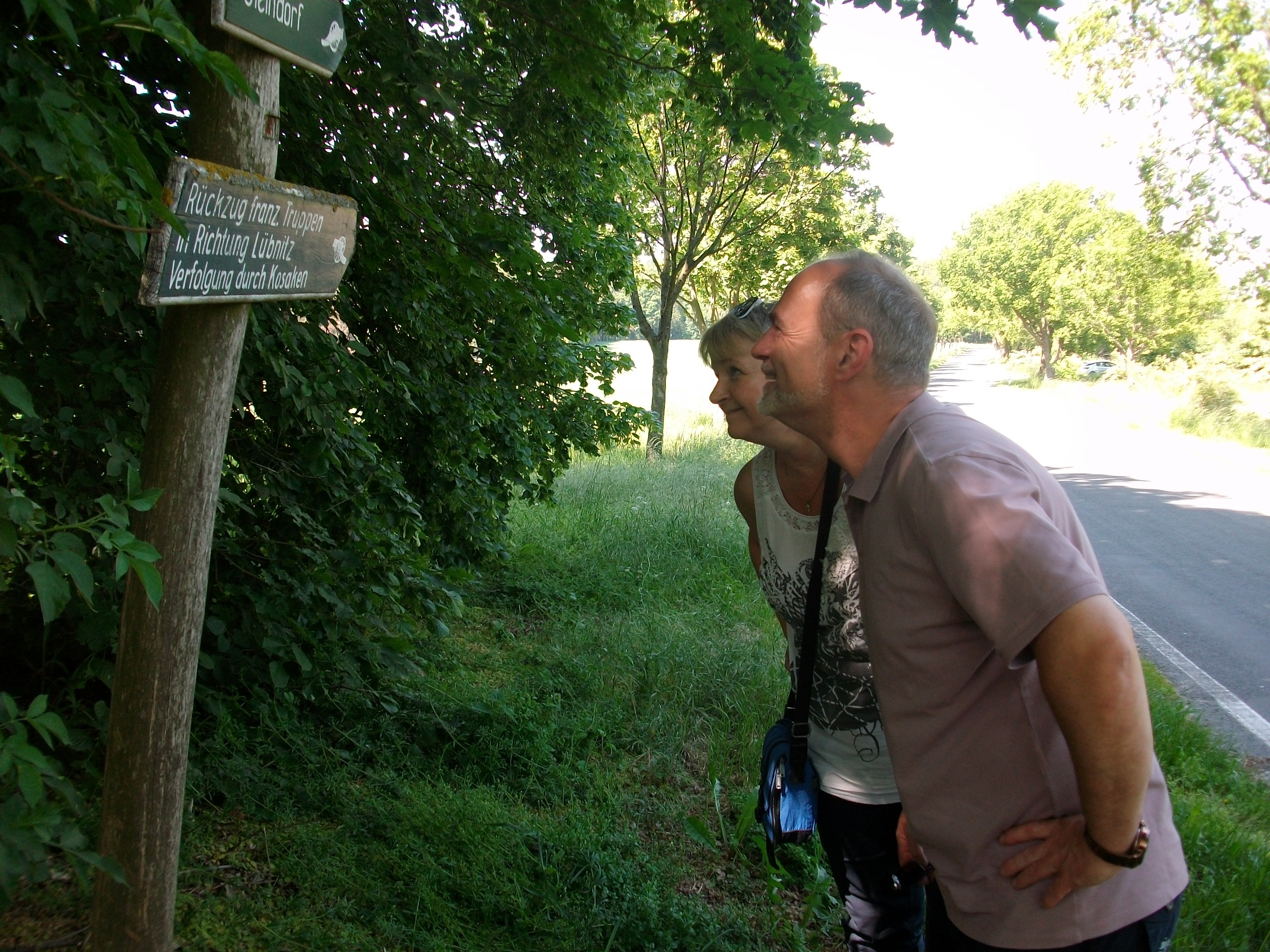 Aber Karin und Elke erzählten Tina & Stephan die Geschichte, wie der mutige Verwalter von Arensnest die preußischen Truppen in den frühen Morgenstunden des 27. Augusts 1813 auf einem geheimen Weg auf das Schlachtfeld von Hagelberg führte.